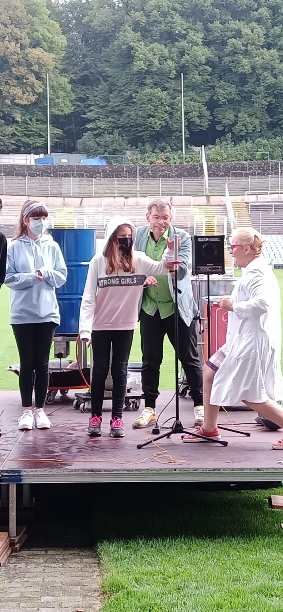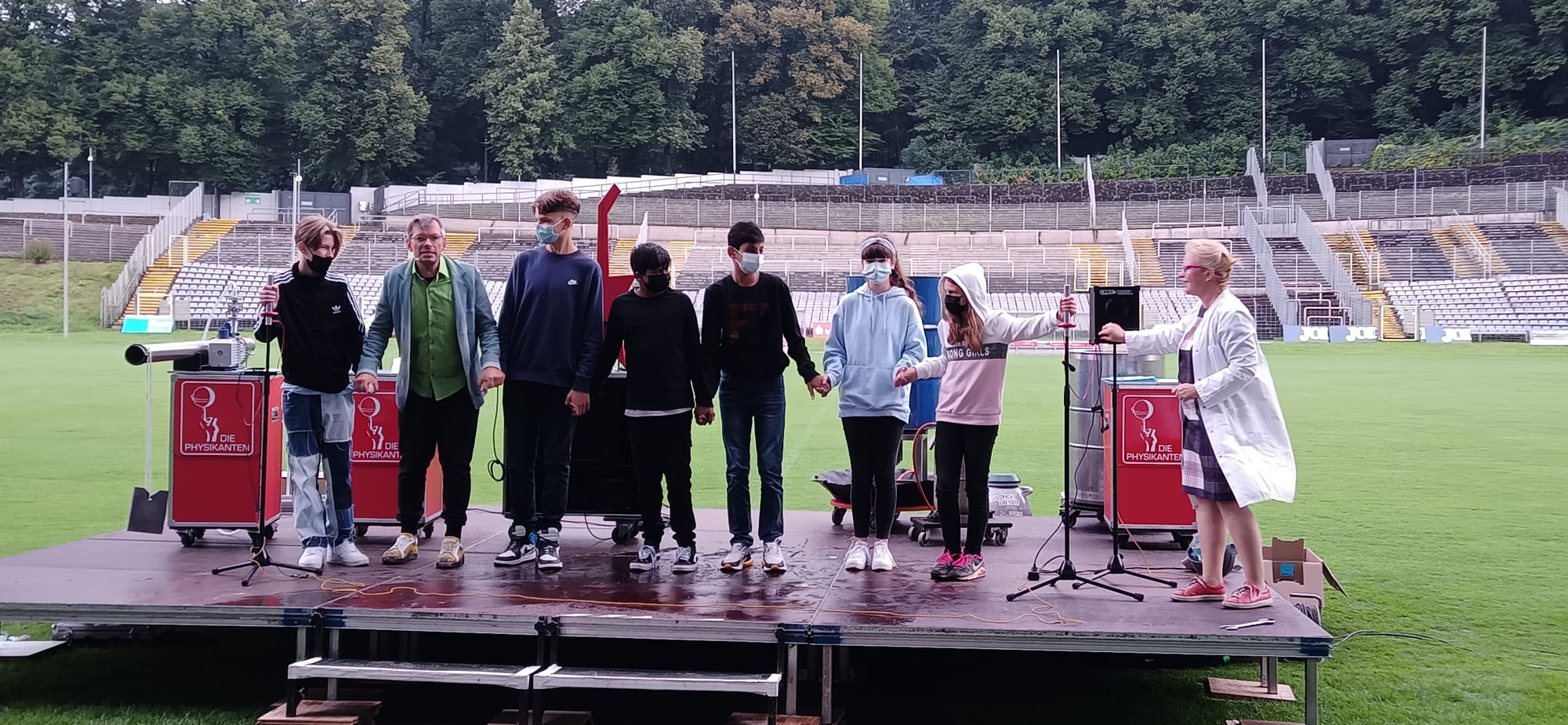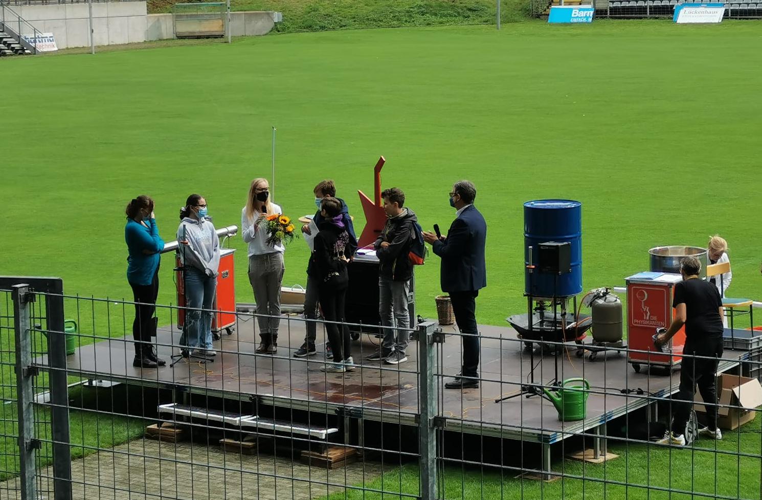 Am Montag, den 30.08.2021, fand die Auszeichnungsfeier zum städtischen Energiespar-Wettbewerb „energie gewinnt“ (Details hier) statt. Das 10. Jubiläum des Wettbewerbs wurde unter freiem Himmel, im Stadion Wuppertal, zelebriert. Von Beginn an, also seit 2011, ist auch unsere Schule jährlich dabei.