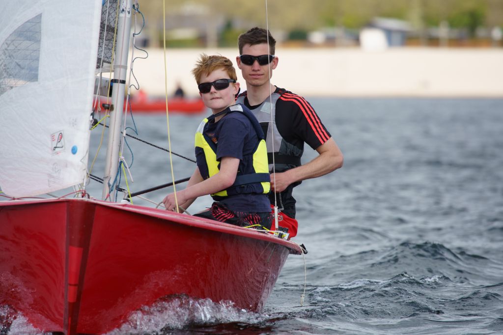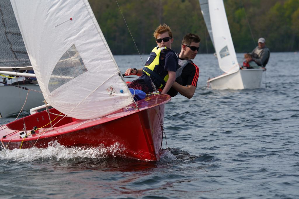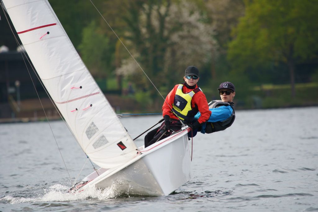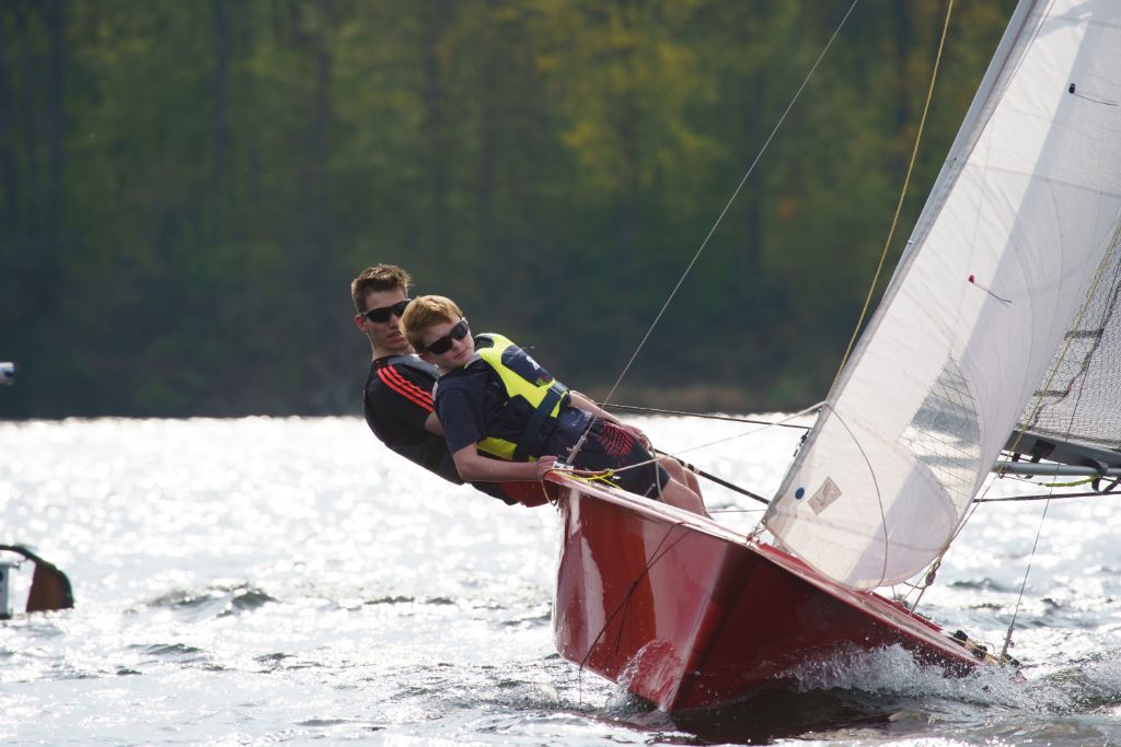 Vorschoter Tom Preinesberger, ebenfalls Mitglied der Segel-AG, ersegelt sich mit seinem Steuermann Tim Schilling (Jugendwart des USCB) bei der Regatta den 6. Platz.