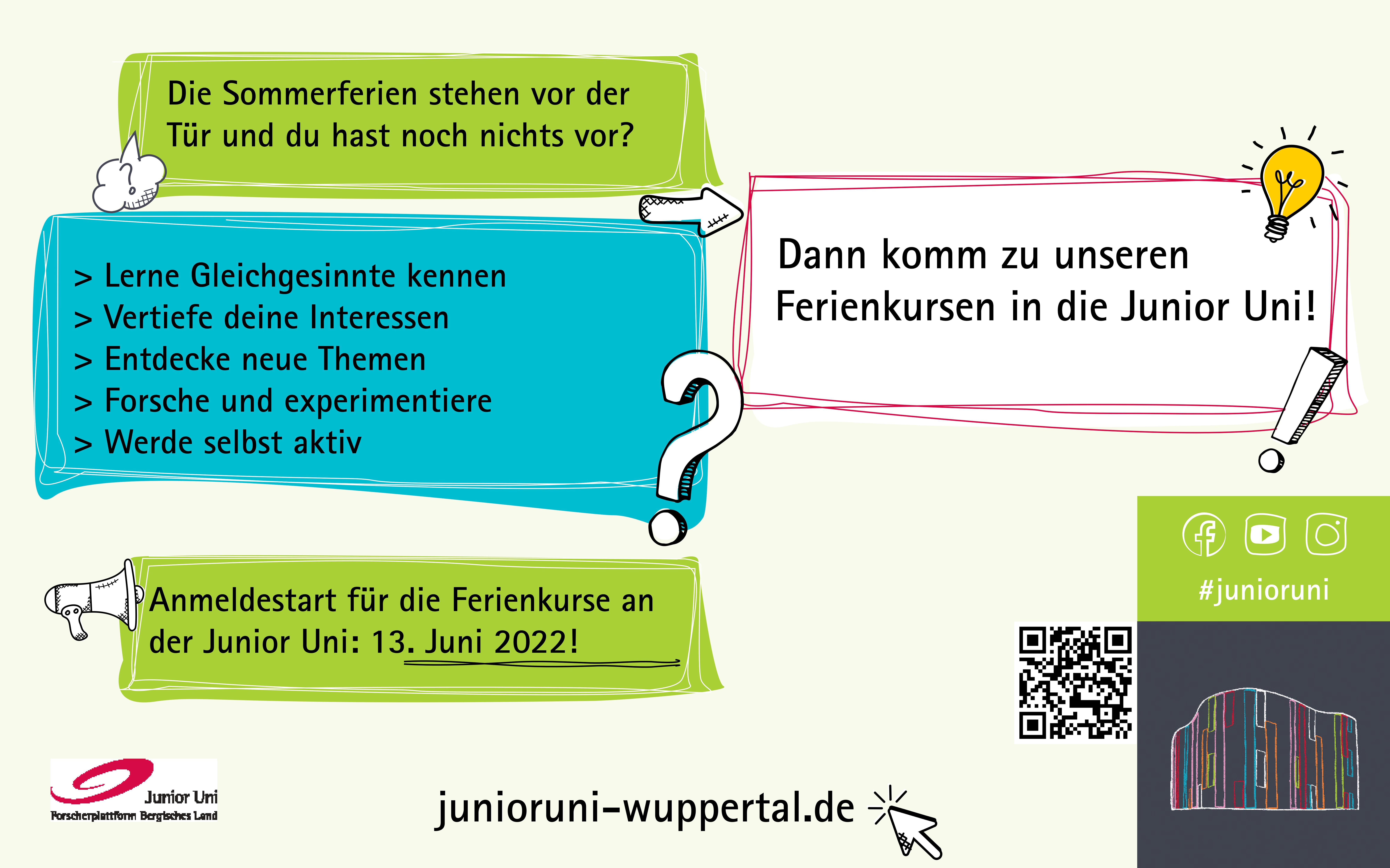 Ab sofort steht das Programmheft auf der Homepage der Junior Uni zur Verfügung und ab dem 13. Juni 2022 ist die Kursbuchung möglich: