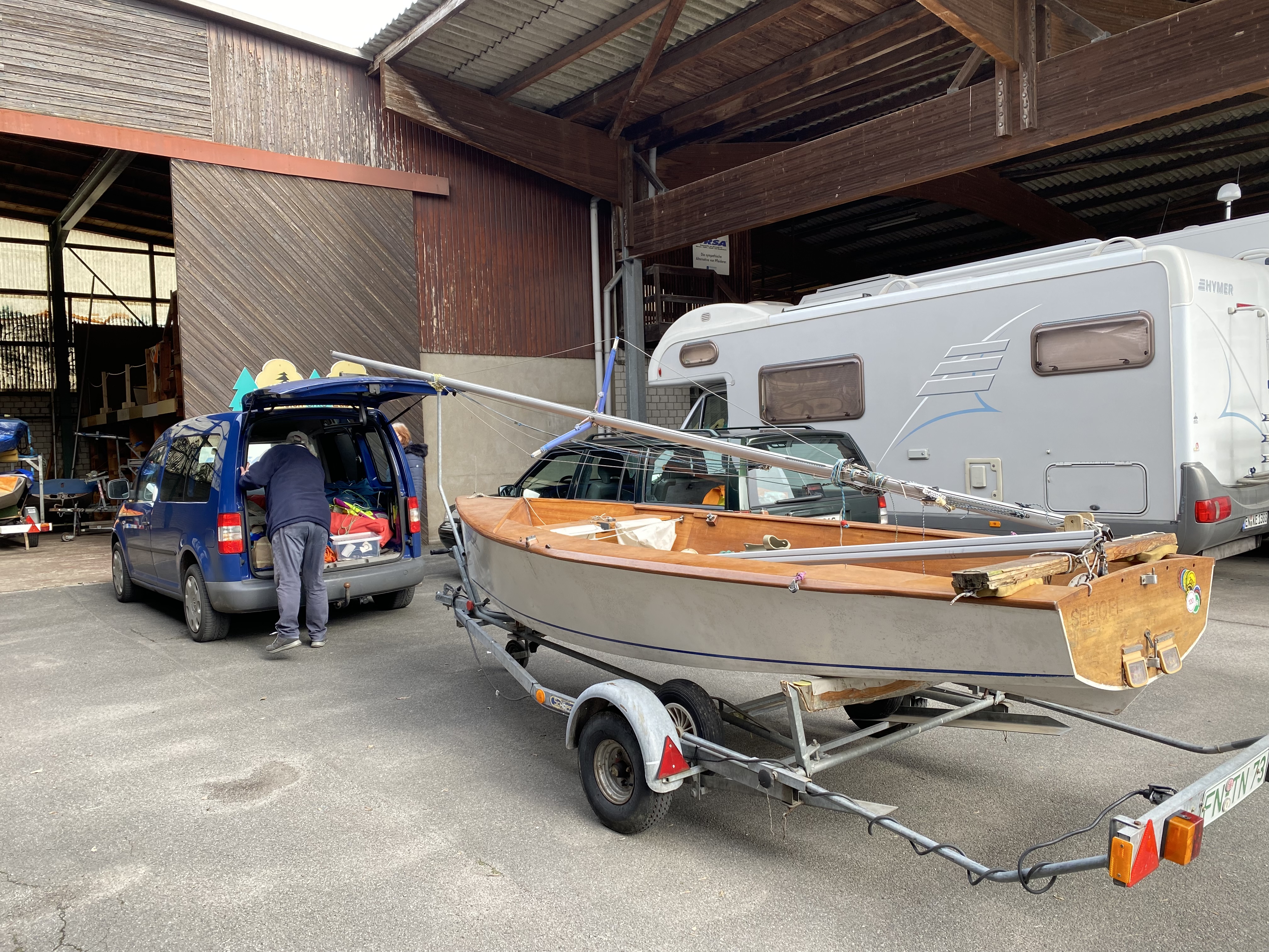 Unsere alte Vaurien der Segel-AG hat nun doch ein paar Baustellen über die Jahre entwickelt, die unsere AG vor der neuen Saison gerne ausbessern wollten. Daher hatte ich auf der BOOT in Düsseldorf am Stand des Seglerverbandes NRW „gestreut“, dass wir eine gute erhaltene alte Vaurien mit Beschlägen zum Schlachten suchen würden.