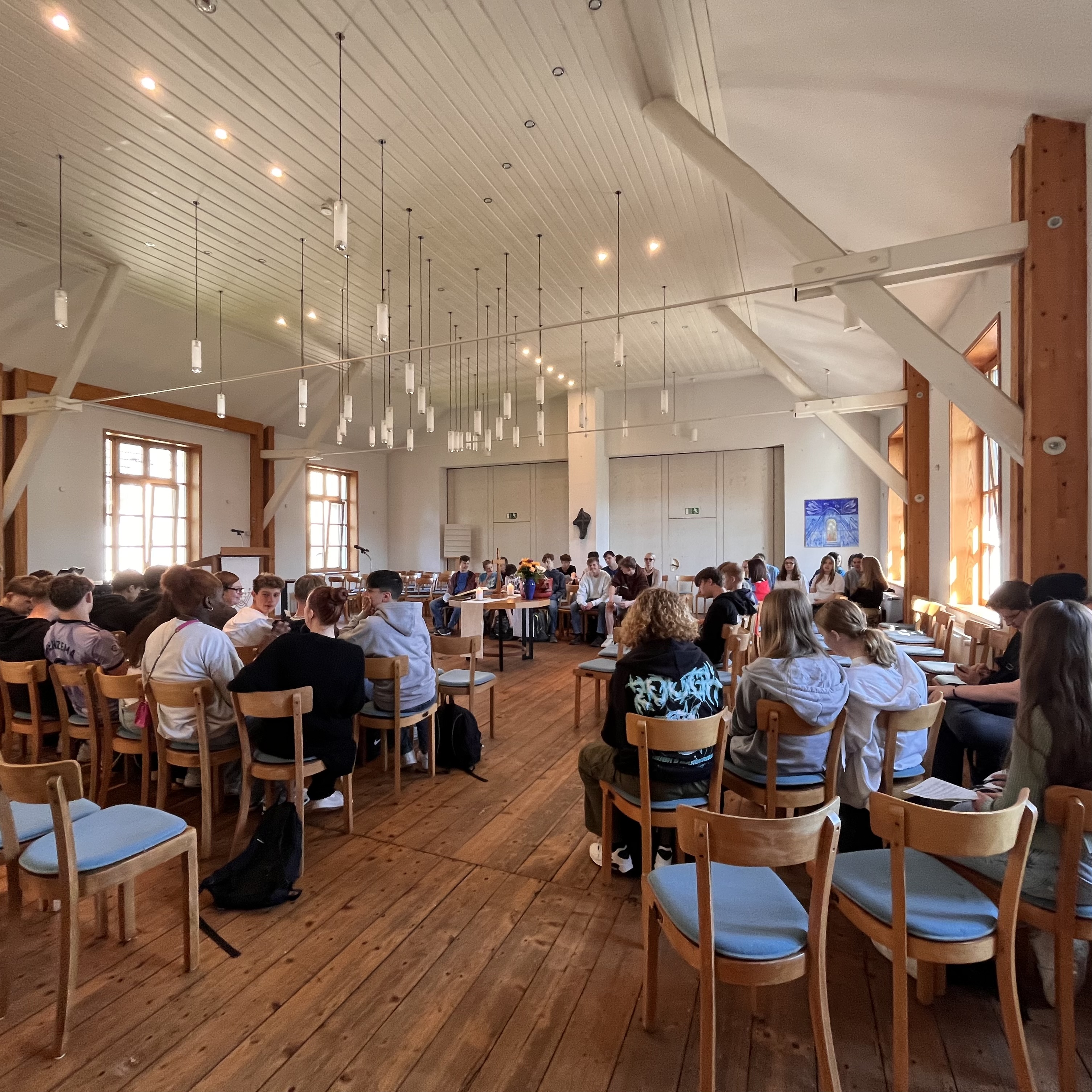 Wir feiern gemeinsam mit den Kursteilnehmer:innen der Fächer evangelische und katholische Religion sowie interessierten Schüler:innen des Abschlussjahrgangs den Beginn ihres neuen Lebensabschnittes in der Beckacker Kirche.