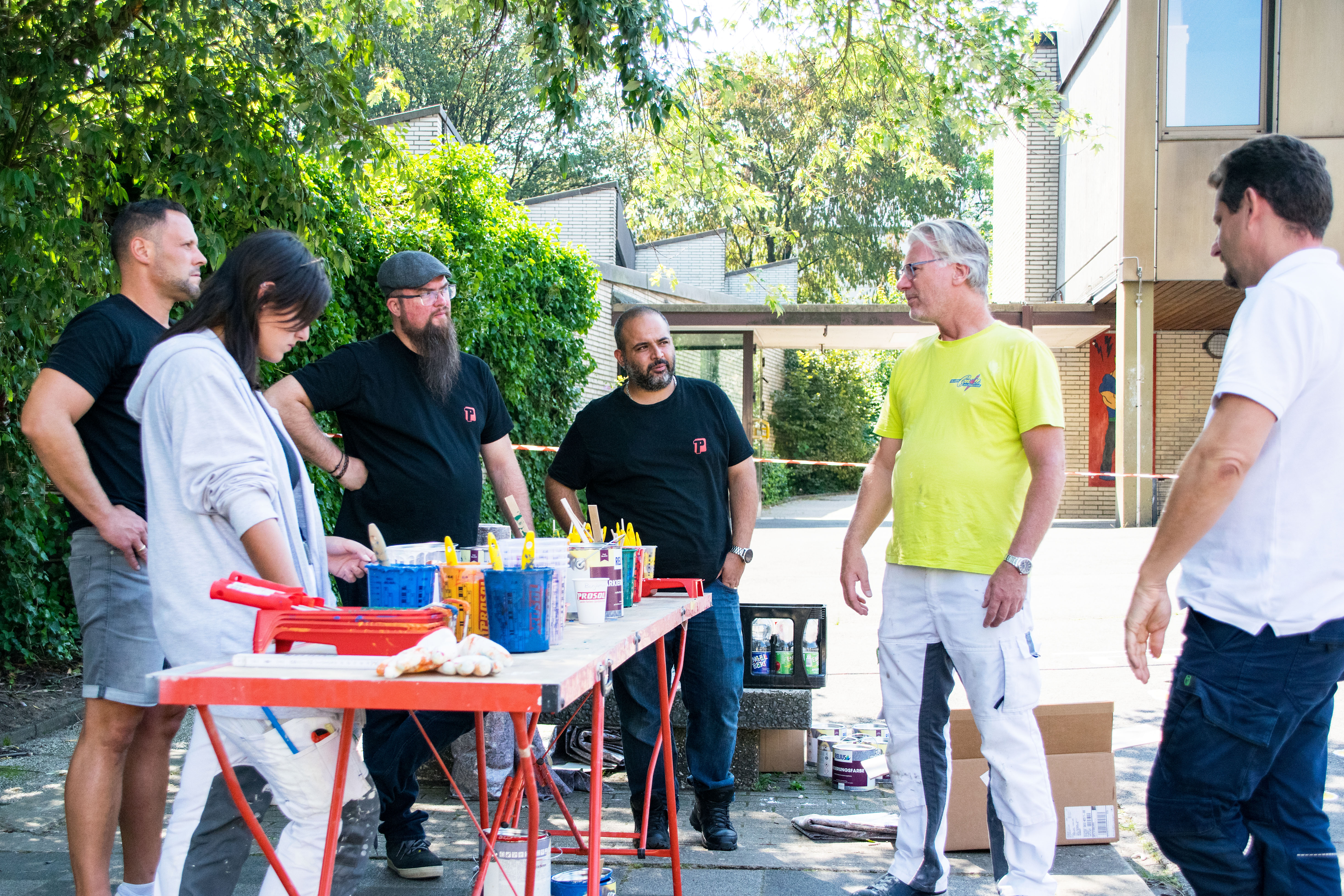 "Unser Schulhof soll schöner werden!" - Zu diesem Thema hat sich eine Projektgruppe der Städtischen Gesamtschule Langerfeld in Kooperation mit der Firma „Prosol – Lacke + Farben“, der Firma „Conyn“ und Vertretern der Malerinnung im August erstmalig zusammengefunden.