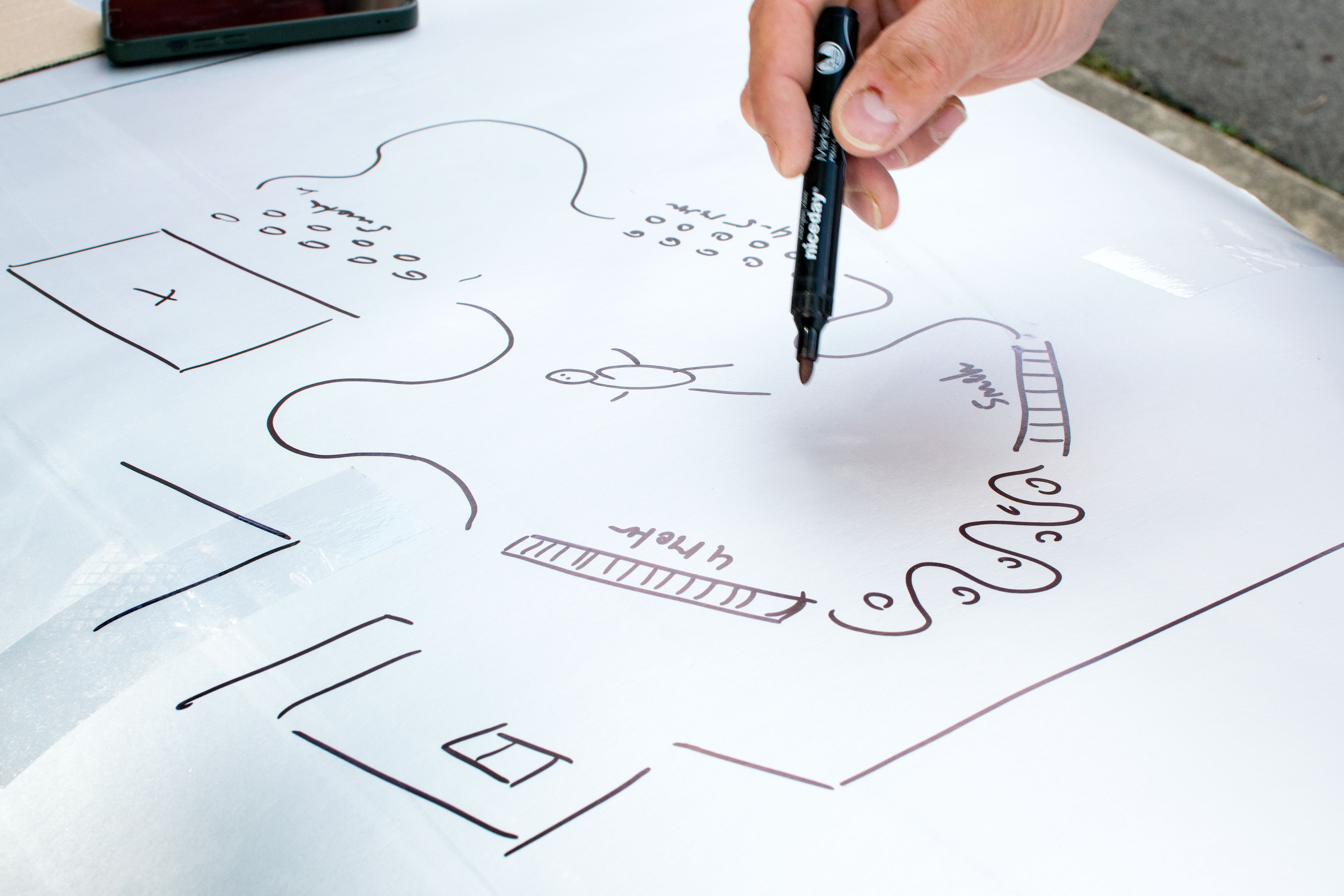 HIND: Es gab einen Workshop bei der letzten SV Fahrt, wo besprochen wurde, wie man unseren Schulhof verschönern und verändern könnte. Dabei war eine Idee, verschiedene Spielflächen auf den Hof zu malen, die aber langfristig halten sollten.