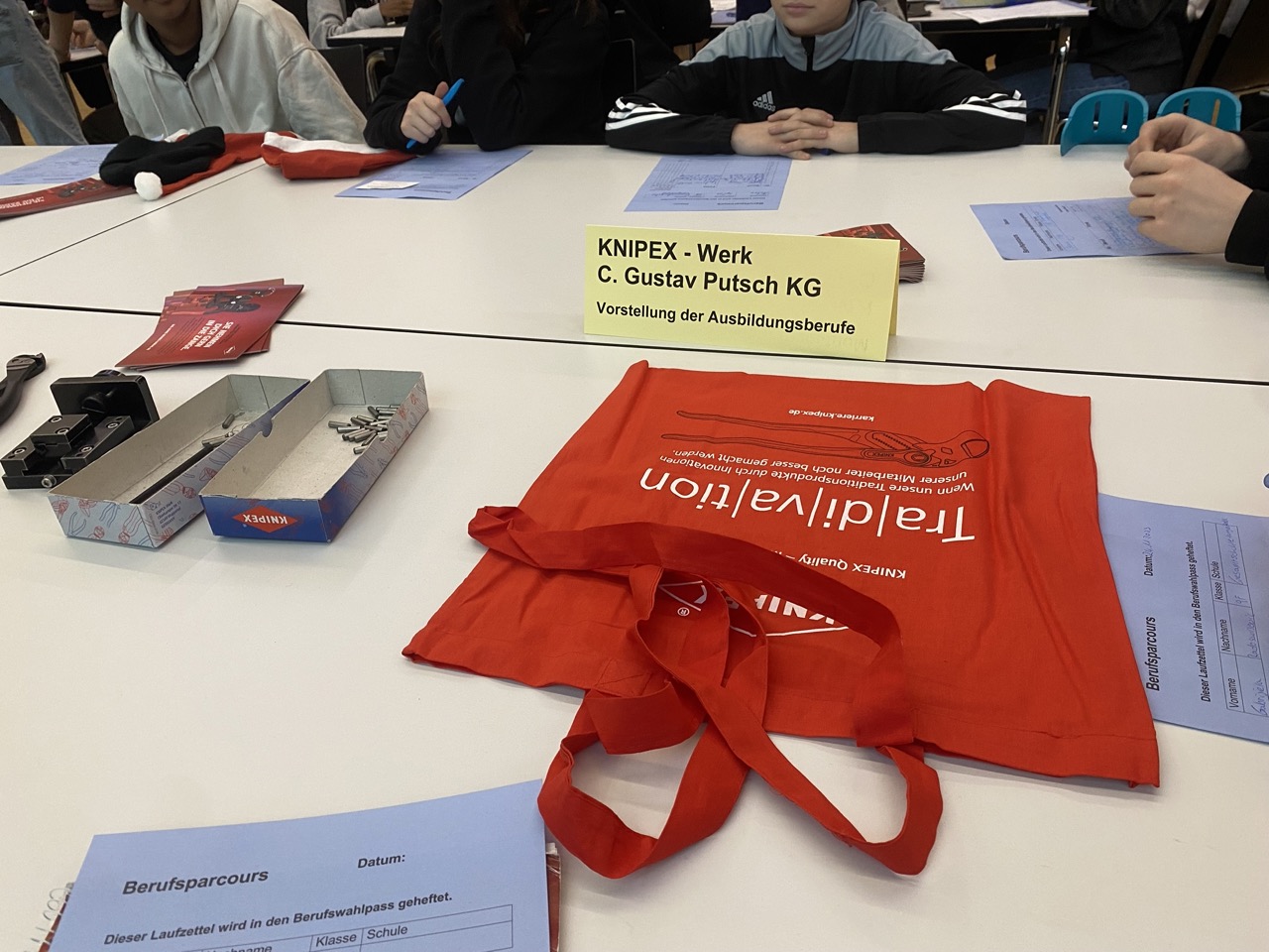 Anders als bei Ausbildungsmessen bestand hier die Besonderheit darin, dass sie an mehreren Stationen typische Arbeitsproben absolvieren durften und dabei mit den jeweiligen Auszubildenden aus den beteiligten Betrieben ins Gespräch kamen. So konnten sie sich mit verschiedenen Berufsbezeichnungen und den dazugehörigen Tätigkeiten vertraut machen. Einige Schülerinnen und Schüler konnten sogar die Ansprechpartner für ihre Bewerbungen kennenlernen und ihnen ihre Fragen stellen.