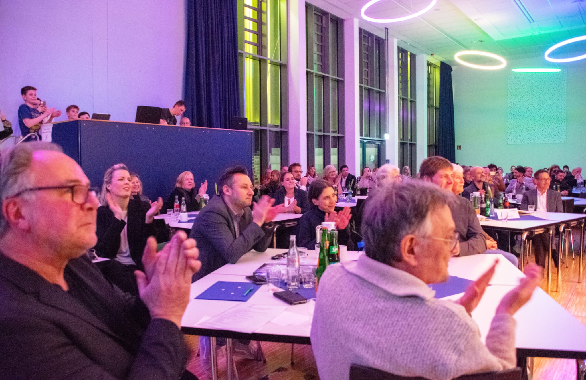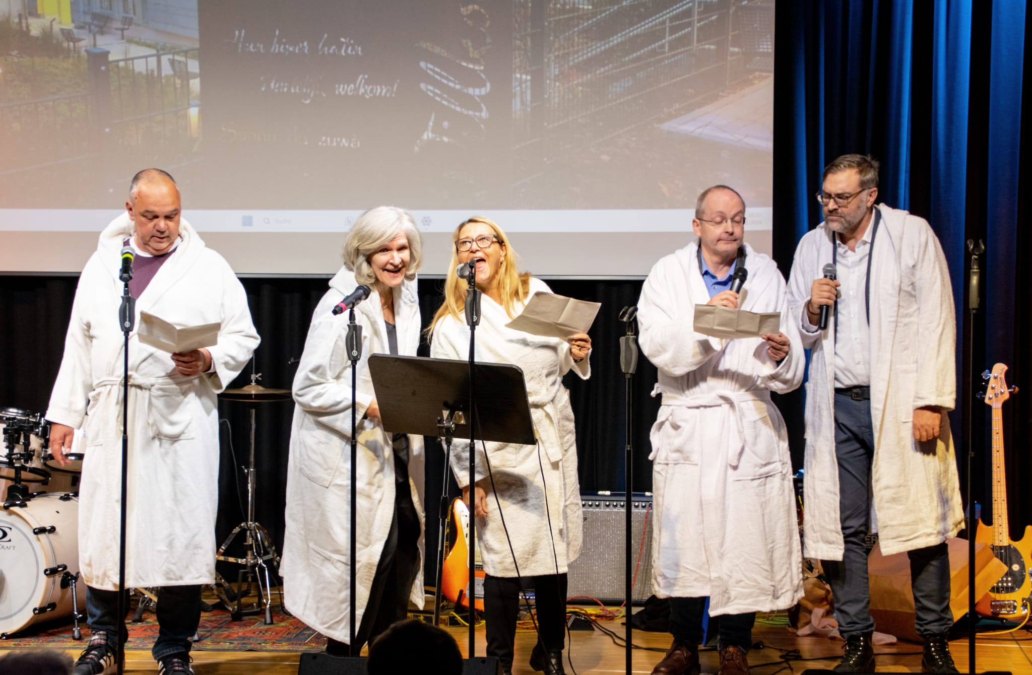 Diesem musikalischen Schwergewicht konnten die Schulleiterinnen und Schulleiter der Gesamtschulen in Wuppertal Paroli bieten. Eine gut ausgeklügelte Choreographie zum Hit von Udo Jürgens „Aber bitte mit Sahne“– zwar umgedichtet, aber inklusive Bademantel - mit überzeugenden Tenor- und Sopranstimmen begeisterte das Publikum ebenfalls und erlangte jubelnde Rufe nach Zugabe.