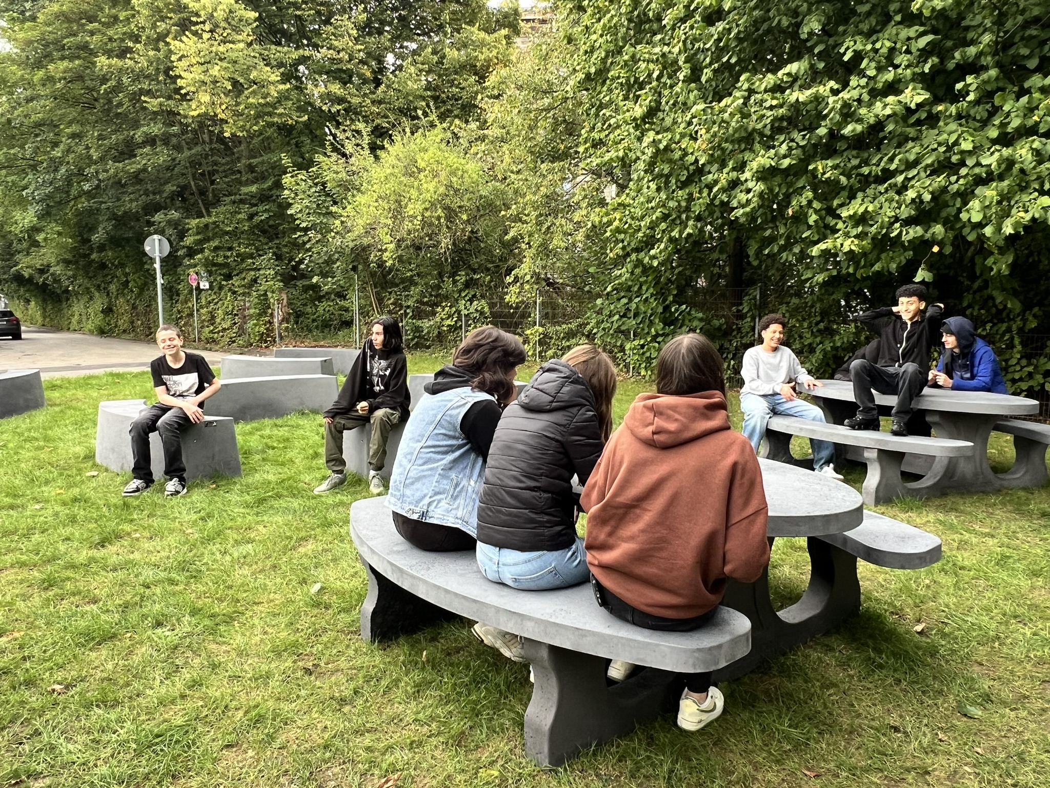 Die Idee eines grünen Klassenzimmers geisterte schon lange durch die Köpfe der Schülervertretung und einiger Lehrkräfte – jetzt ist sie endlich Wirklichkeit geworden! Vor Kurzem wurden wetterbeständige Betonmöbel vor Haus 4 aufgestellt, die Schülerinnen und Schülern eine ganz neue Möglichkeit bieten, den Unterricht oder Pausen draußen zu verbringen.