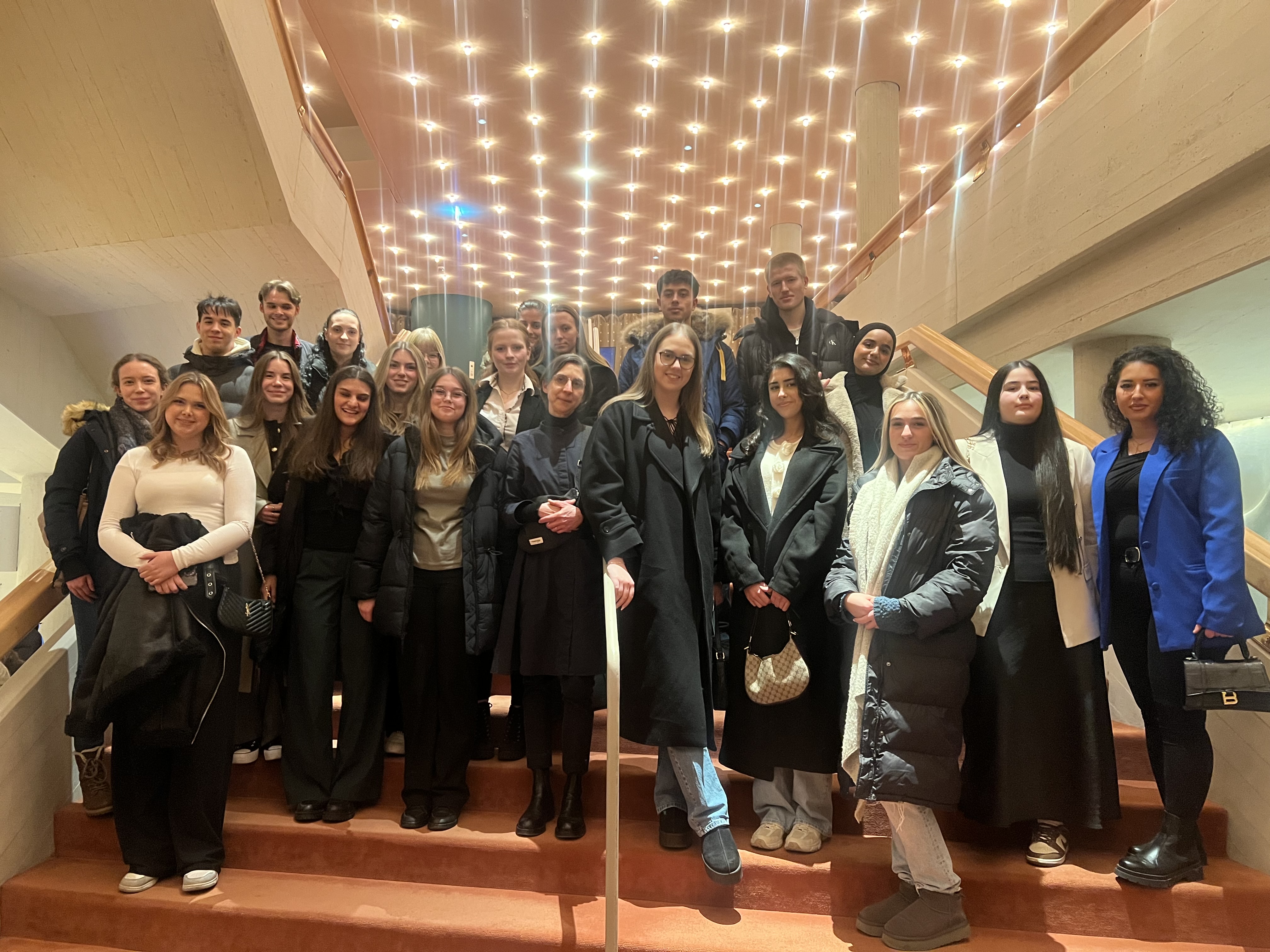 Die Schülerinnen und Schüler der Leistungskurse Deutsch verfolgten zusammen mit ihren Lehrkräften eine Inszenierung, die in einer Mischung aus Theaterspiel und Videoeinblendungen von einer Gesellschaft erzählt, die so menschenfeindlich eingerichtet ist, dass sie ihre eigenen Monster schafft. Das bald 200 Jahre alte Stück, das zu den meistgespielten und einflussreichsten Dramen der deutschen Literatur zählt, rückte so doch noch einmal näher an die heutige Zeit heran. Wie das Stück auf der Bühne umgesetzt und welche Schwerpunkte für die Inszenierung getroffen wurden, sorgte jedenfalls für viel Gesprächsbedarf unter den dem Anlass entsprechend schick gekleideten Schülerinnen und Schülern.