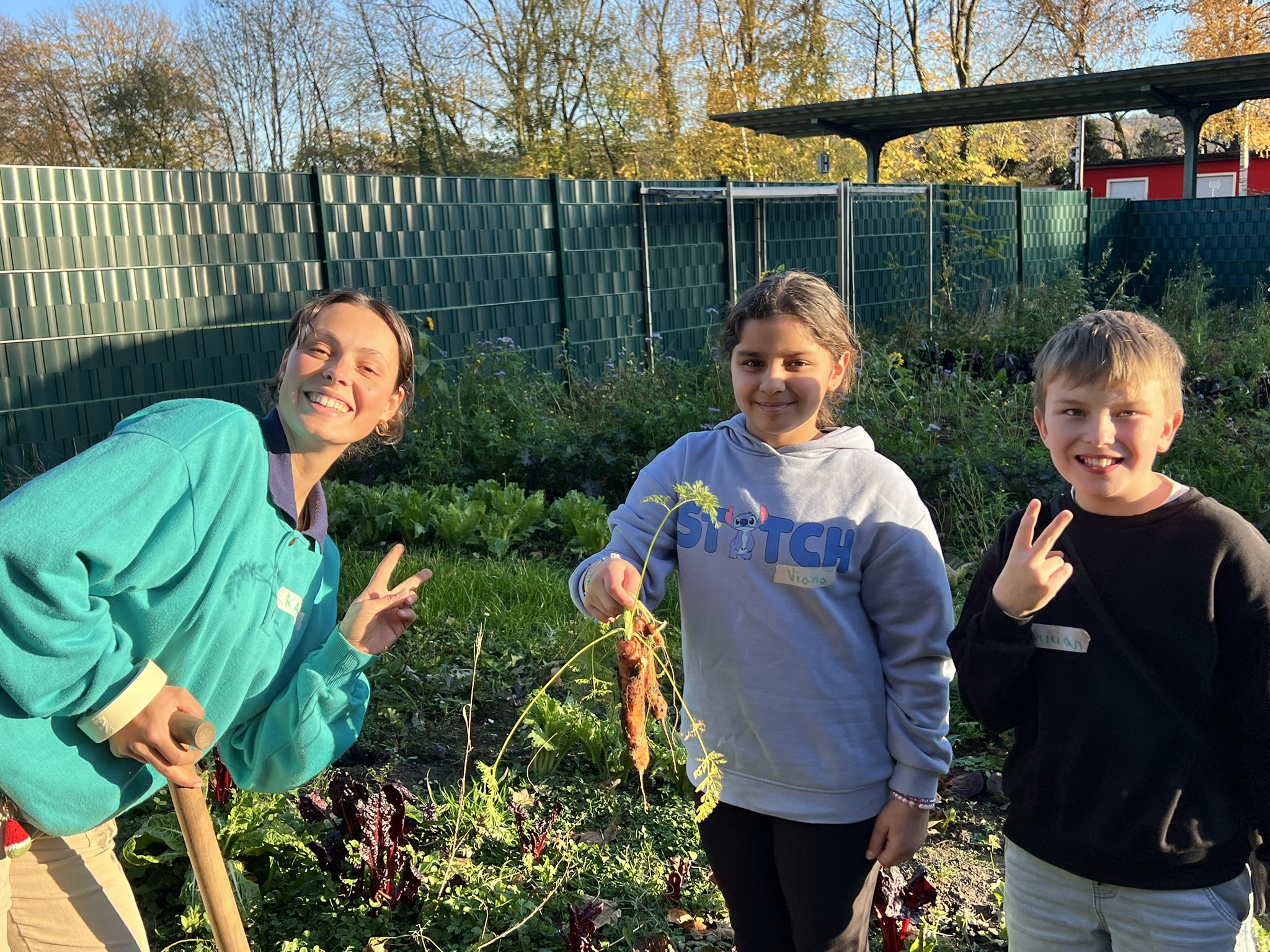 Vor Ort erkundeten die Schüler:innen mit viel Neugier den Aufbau des Ackers, entdeckten Pflanzenarten und durften manche sogar probieren. Dabei erhielten sie einen ersten Einblick, wie Gemüseanbau in der Praxis aussehen kann. Ein abschließendes Quiz rundete den Nachmittag ab und sorgte für gute Stimmung. Dank der motivierten Kleingruppe wurde deutlich, wie spannend Lernen außerhalb des Klassenzimmers sein kann. Die Schüler:innen freuen sich bereits auf ihre nächsten Entdeckungstouren im Grünen und haben mit Karo vom Bildungsacker bereits drei weitere Treffen geplant: säen, Pflanzen spielerisch kennenlernen, ernten und kochen inkl. eines Kartoffeltags als Abschlussfest. Das klingt nach einem tollen Jahresprogramm!