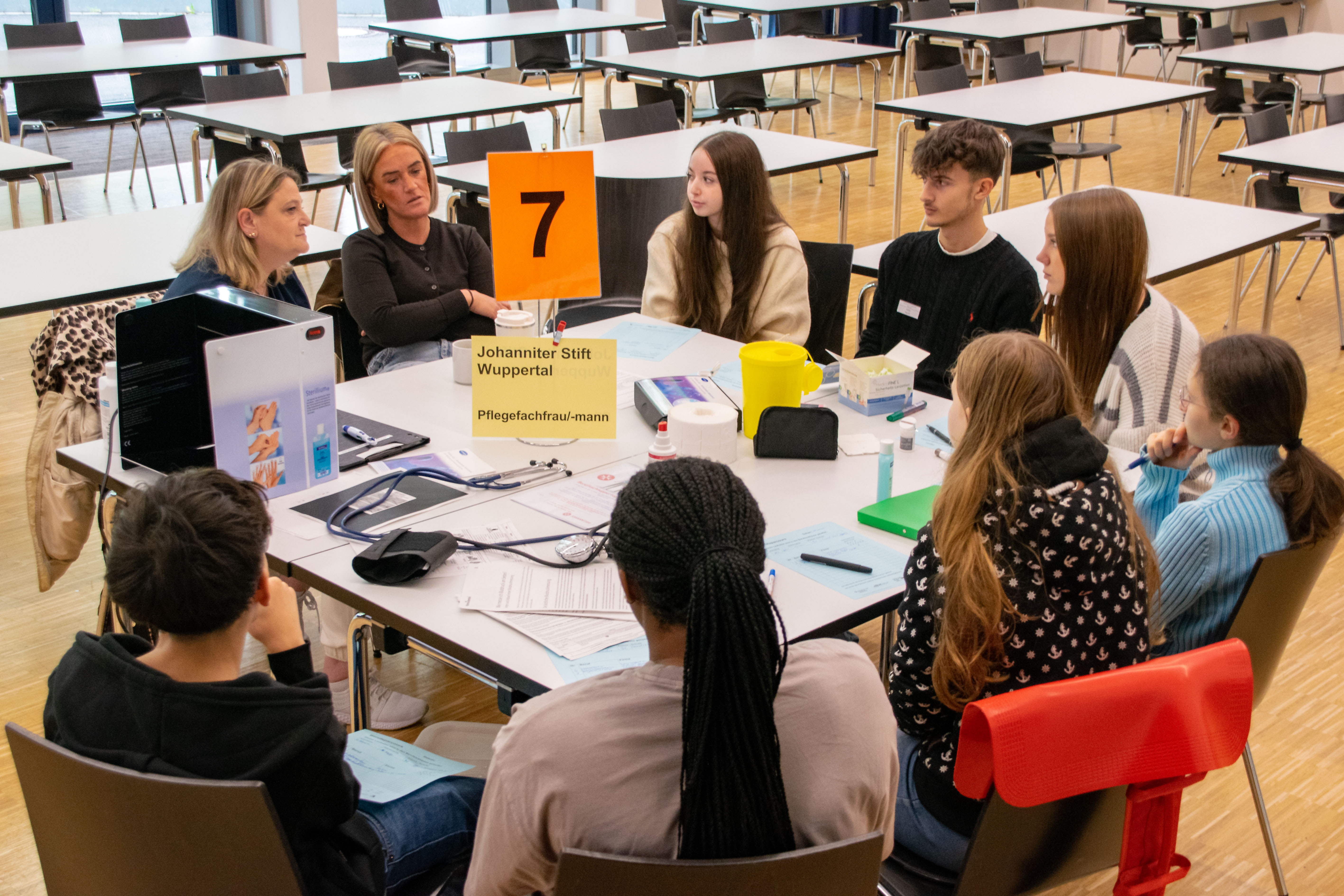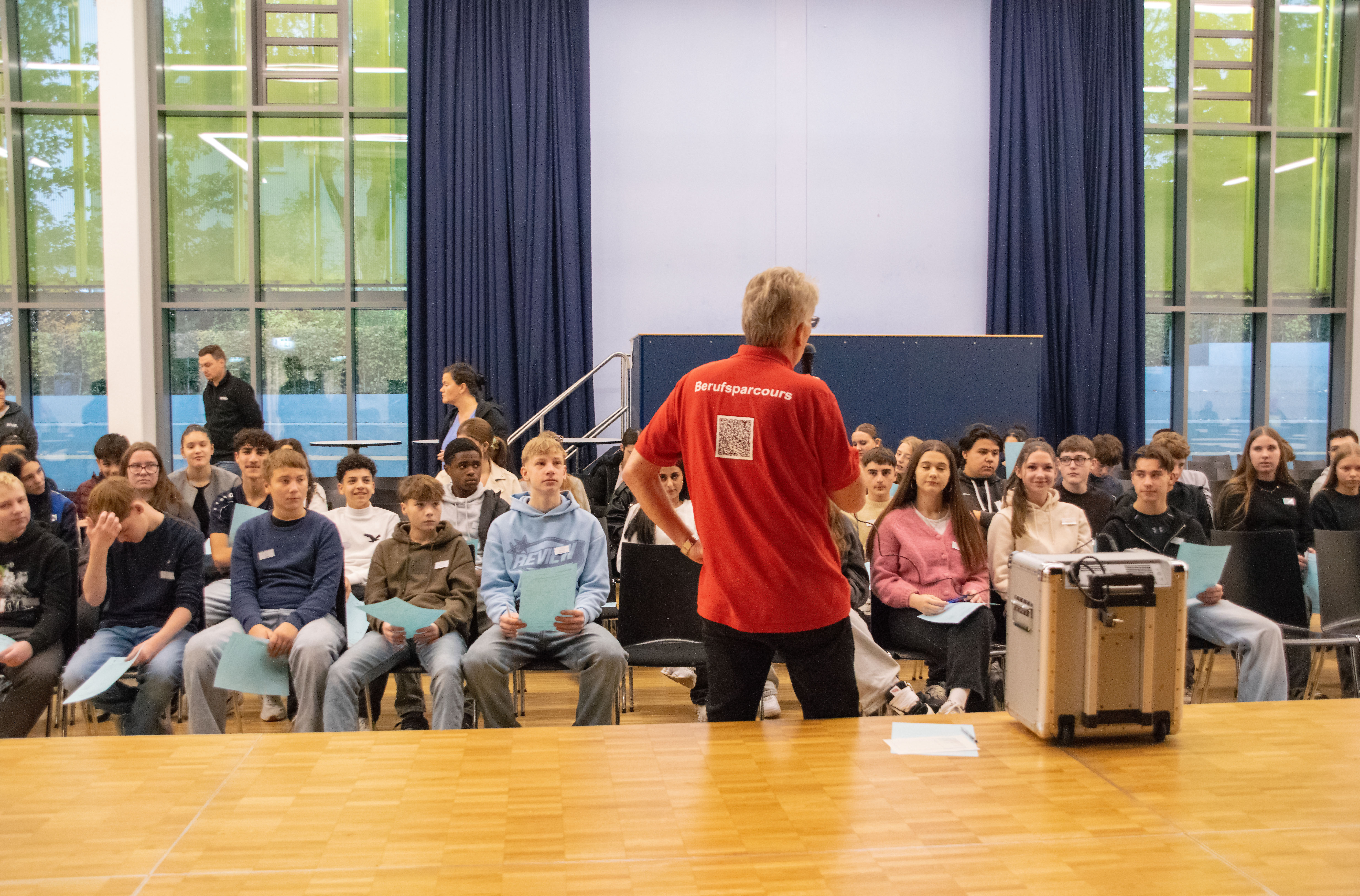 Im Rahmen der Projektwoche des Jahrgangs 9, die ganz im Zeichen der Berufsorientierung stand, fand am letzten Projekttag der Berufsparcours im Forum unserer Schule statt. Ziel dieser Veranstaltung war es, den Schüler:innen einen möglichst praxisnahen Einblick in verschiedene Berufsfelder zu ermöglichen und sie bei ihrer persönlichen Zukunftsplanung zu unterstützen.