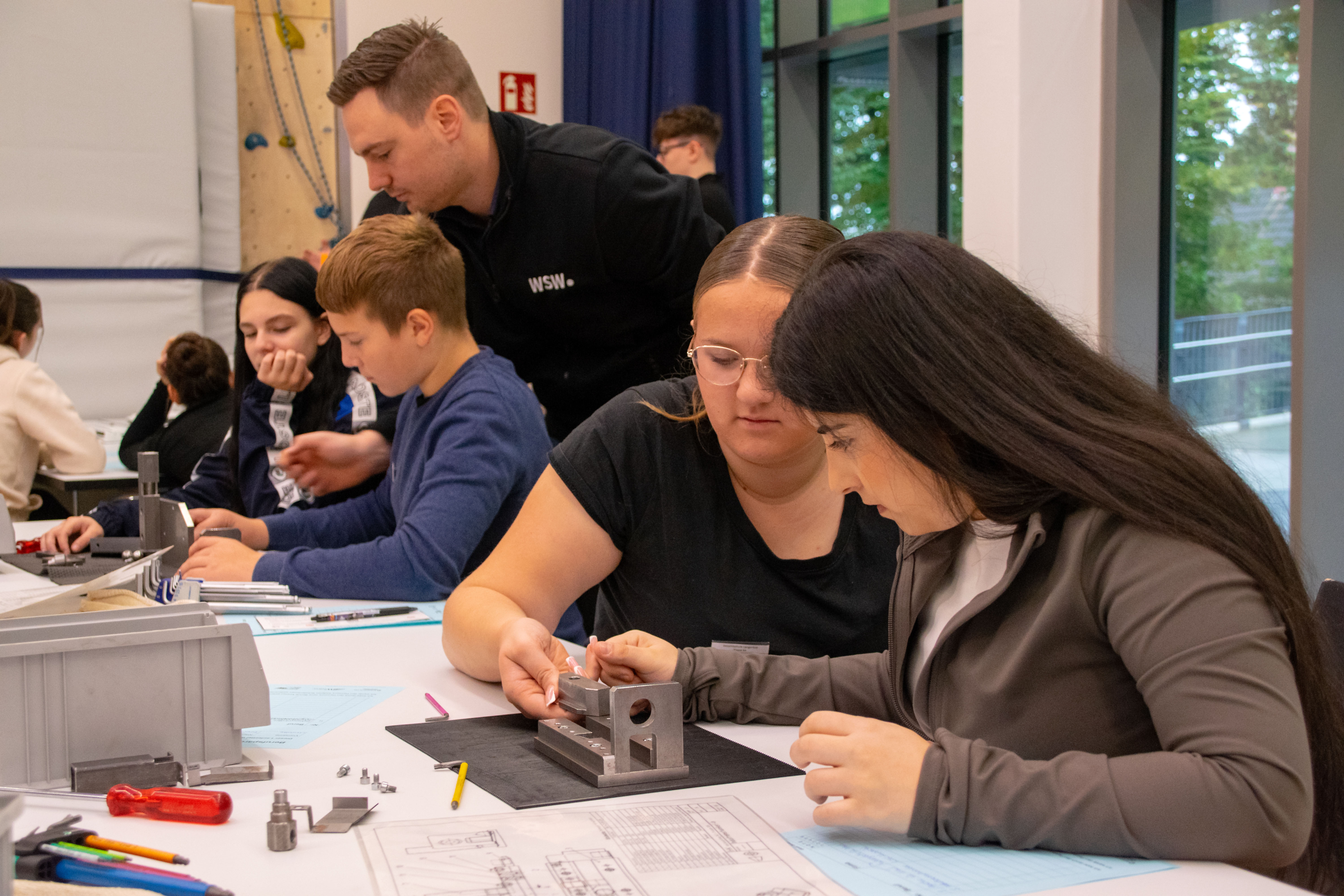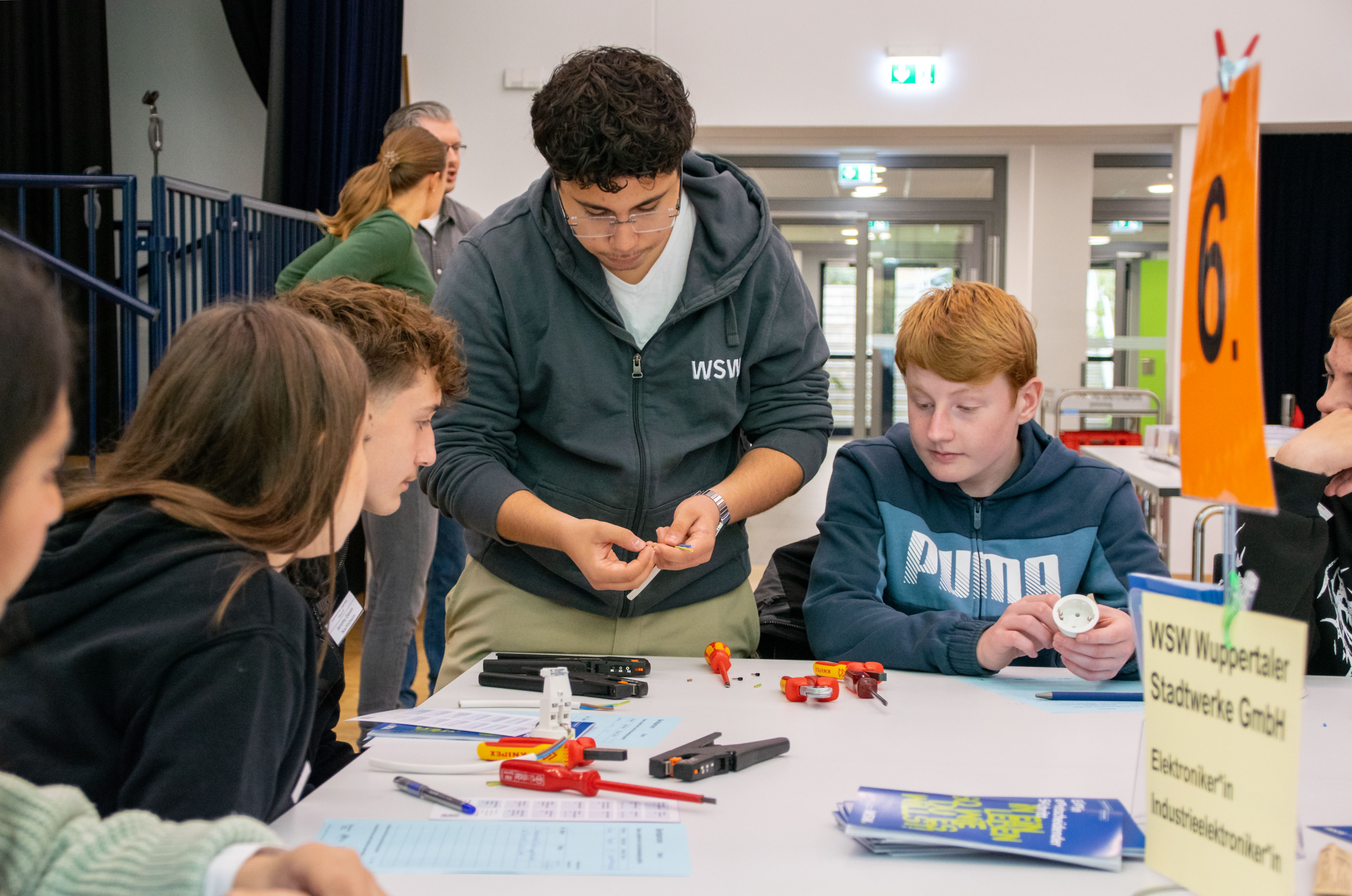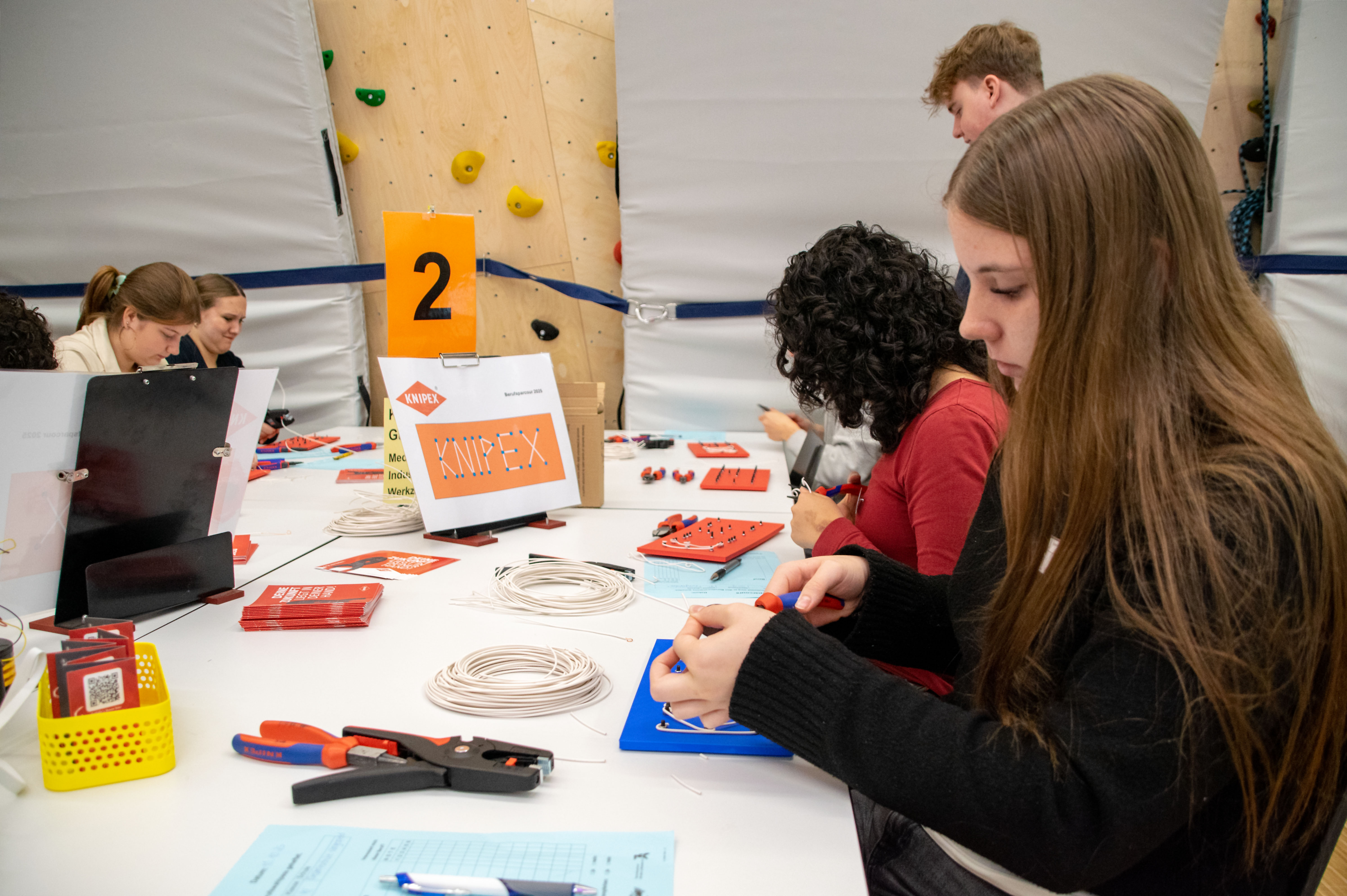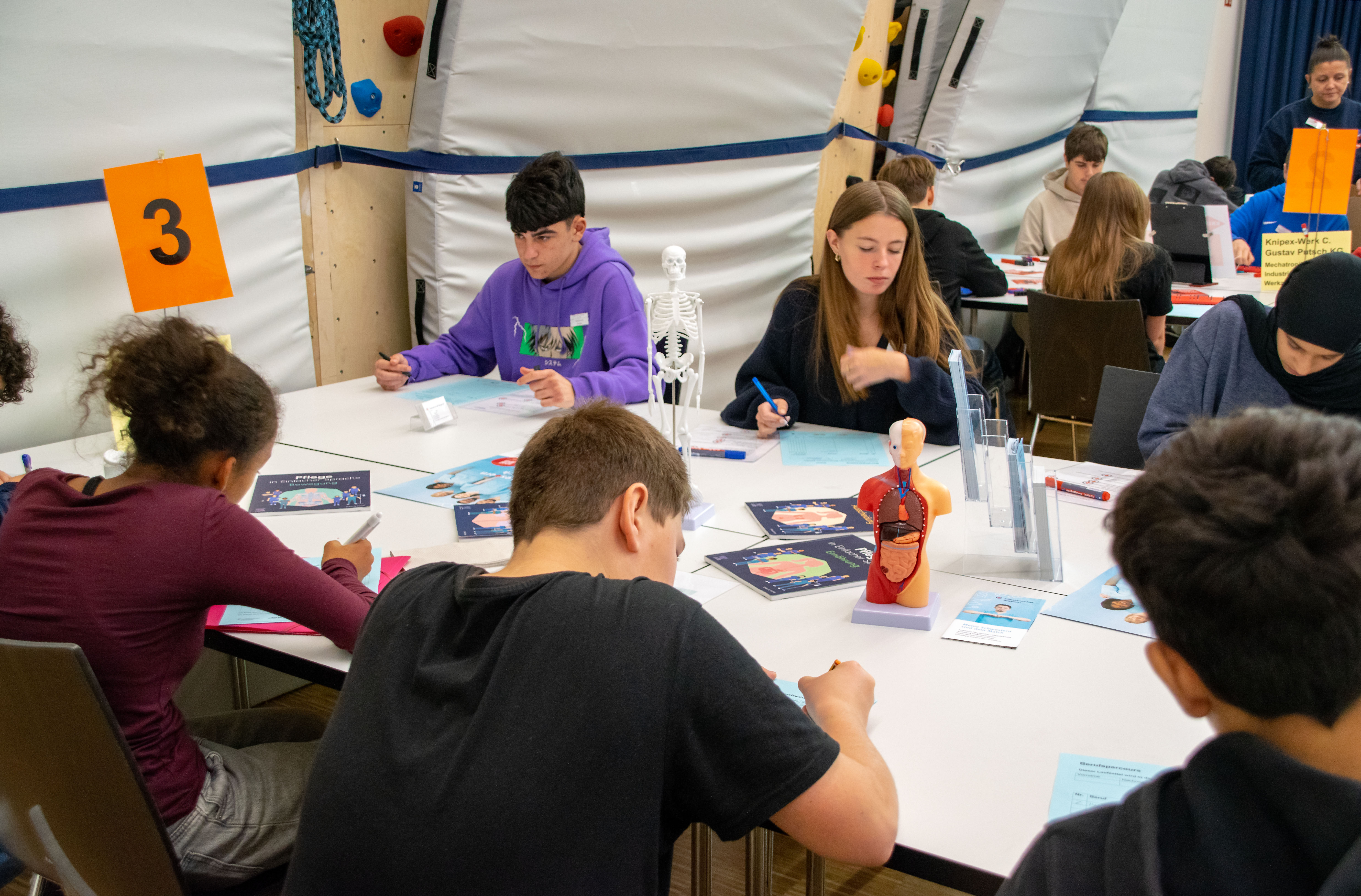 Zu diesem Anlass waren sieben Unternehmen aus unterschiedlichen Branchen vertreten – von Handwerk und Technik über Pflege und Verwaltung bis hin zu kaufmännischen Tätigkeiten. An den einzelnen Stationen stellten die Firmen nicht nur ihre Ausbildungsberufe vor, sondern boten den Schüler:innen auch spannende Mitmachaktionen und praktische Übungen an. So konnten die Jugendlichen selbst aktiv werden, verschiedene Tätigkeiten ausprobieren und ihre eigenen Fähigkeiten entdecken.