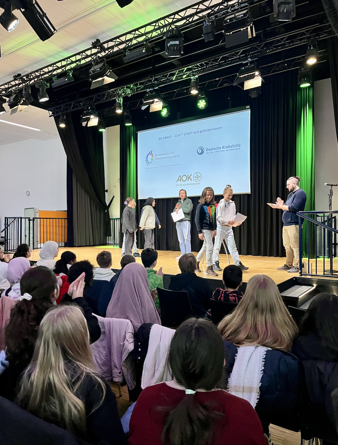 Wir freuen uns, mitteilen zu können, dass unsere Schule beim Kreativwettbewerb von „Be smart – don`t start“ einen besonderen Erfolg erzielt hat! Der Wettbewerb, der sich gegen das Rauchen richtet und sich für das Nichtrauchen stark macht, hat unsere Schüler:innen im Jahrgang 6 dazu inspiriert, ihre Kreativität und ihr Engagement auf verschiedene Weisen auszudrücken.
