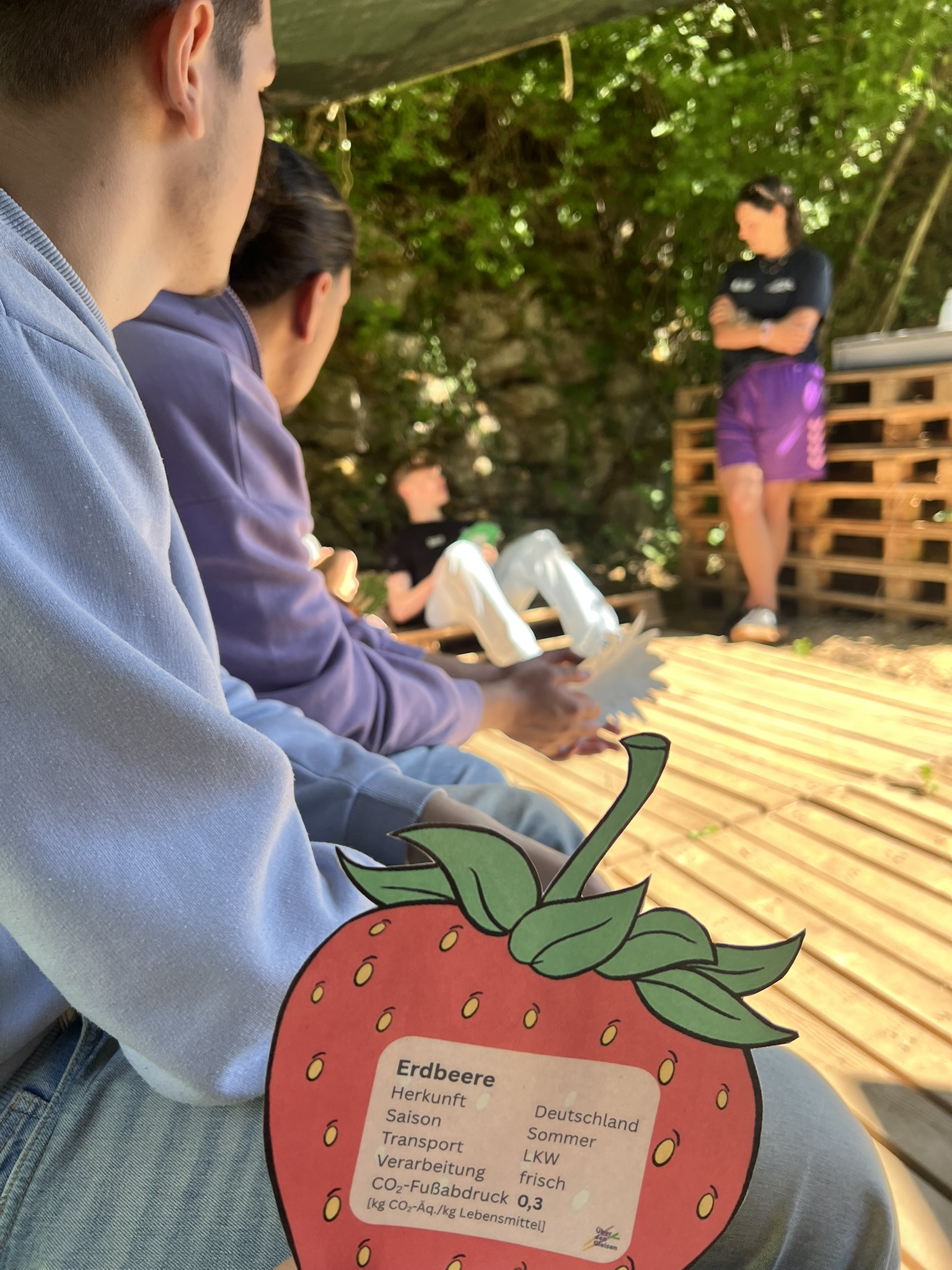 Andere Gruppen befassten sich mit Obst- und Gemüsesorten aus aller Welt. Wir verglichen Herkunft, Erntezeiten und dann auch den ökologischen Fußabdruck. Einprägsam war zum Beispiel, dass eine heimische Erdbeere im Sommer viel „umweltfreundlicher“ ist als ein Apfel aus Übersee.
