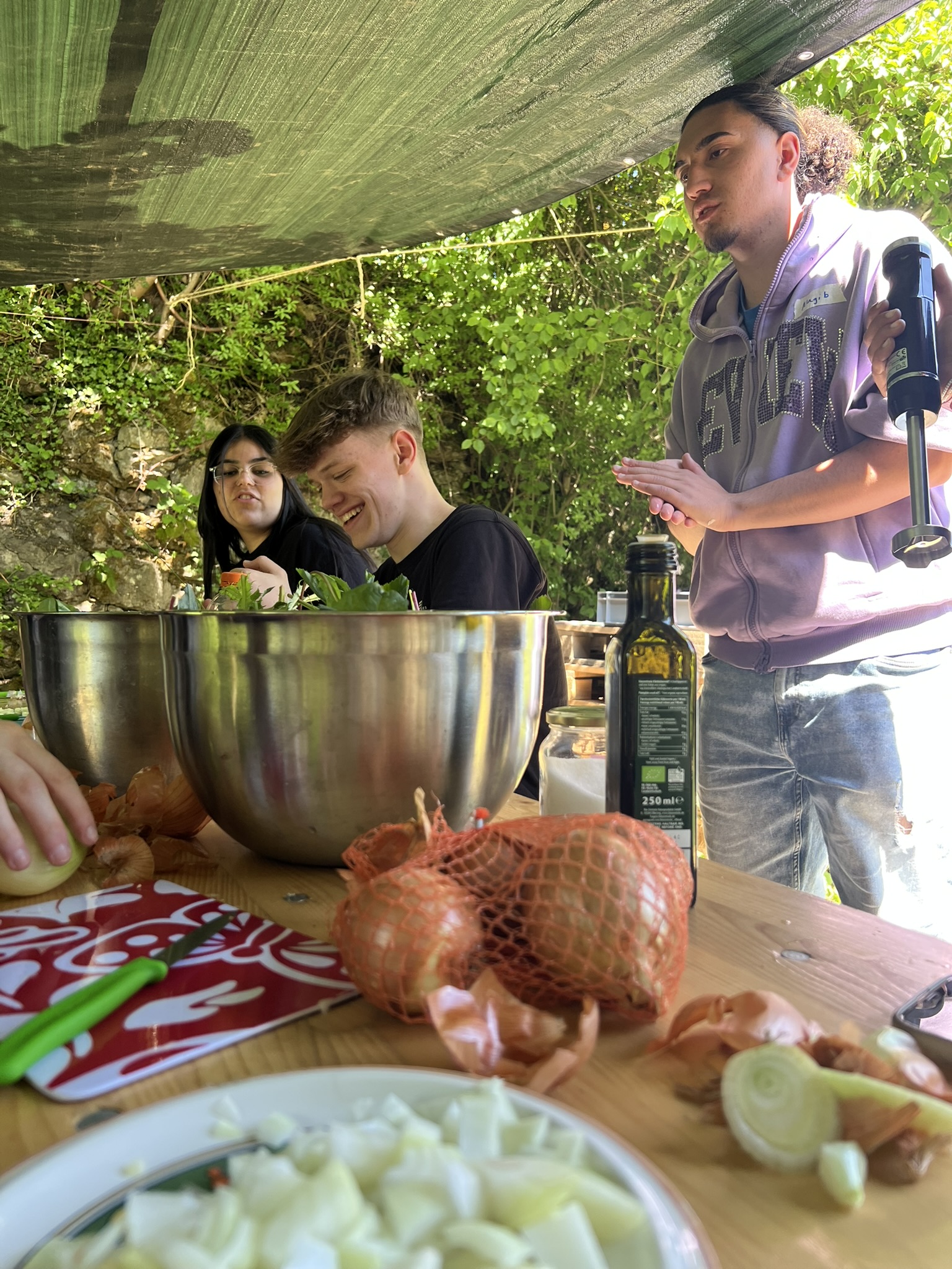 In Kleingruppen untersuchten wir die Zutaten unserer Lieblingsgerichte: Woher kommen sie? Wie viele Ressourcen werden für Anbau und Transport gebraucht? Dabei fiel auf, dass viele Lebensmittel lange Wege zurücklegen – und dass besonders Fleisch einen großen ökologischen Fußabdruck hat. Ganz auf Fleisch zu verzichten, schien uns zwar schwierig, aber viele von uns waren offen dafür, den Konsum zu reduzieren.