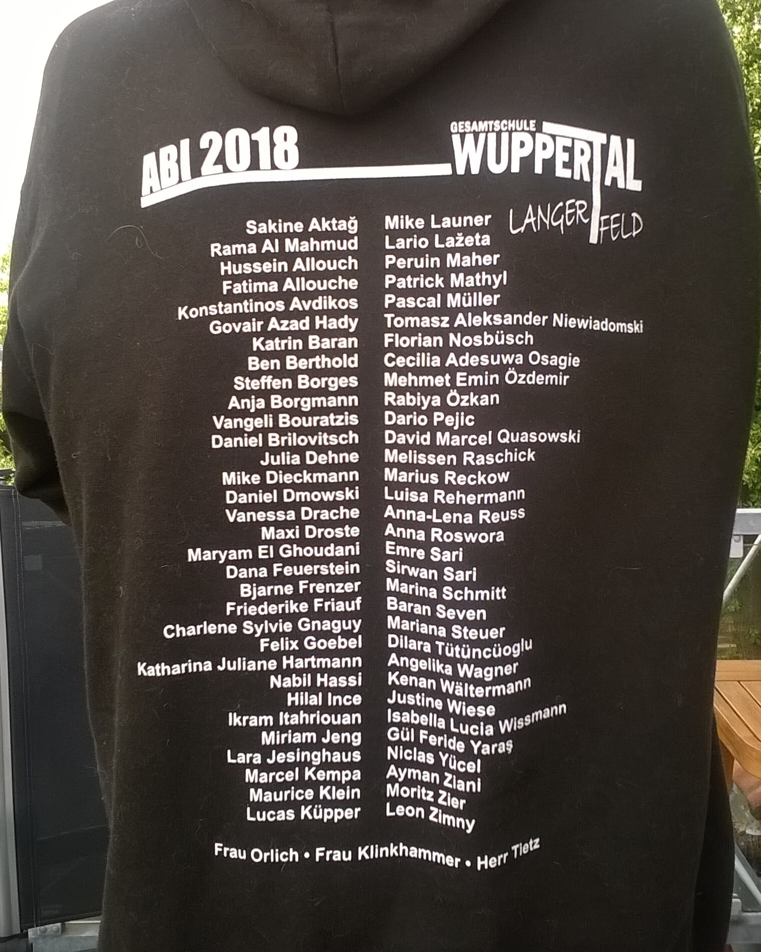 Der Abend wurde immer wieder aufgelockert durch die musikalischen Beiträge der Band Moongod, die sich ein abwechslungsreiches Programm überlegt hatte. Die Bandmitglieder, ihres Zeichens fast alle ebenfalls Schüler*innen der Gesamtschule Langerfeld, konnten vielleicht die ein oder andere Anregung für die eigene Abiturfeier mitnehmen, die allerdings – und darüber freuen wir uns sehr – im Jahr 2019 erstmalig in der eigenen Aula und nicht mehr außer Haus stattfinden wird!