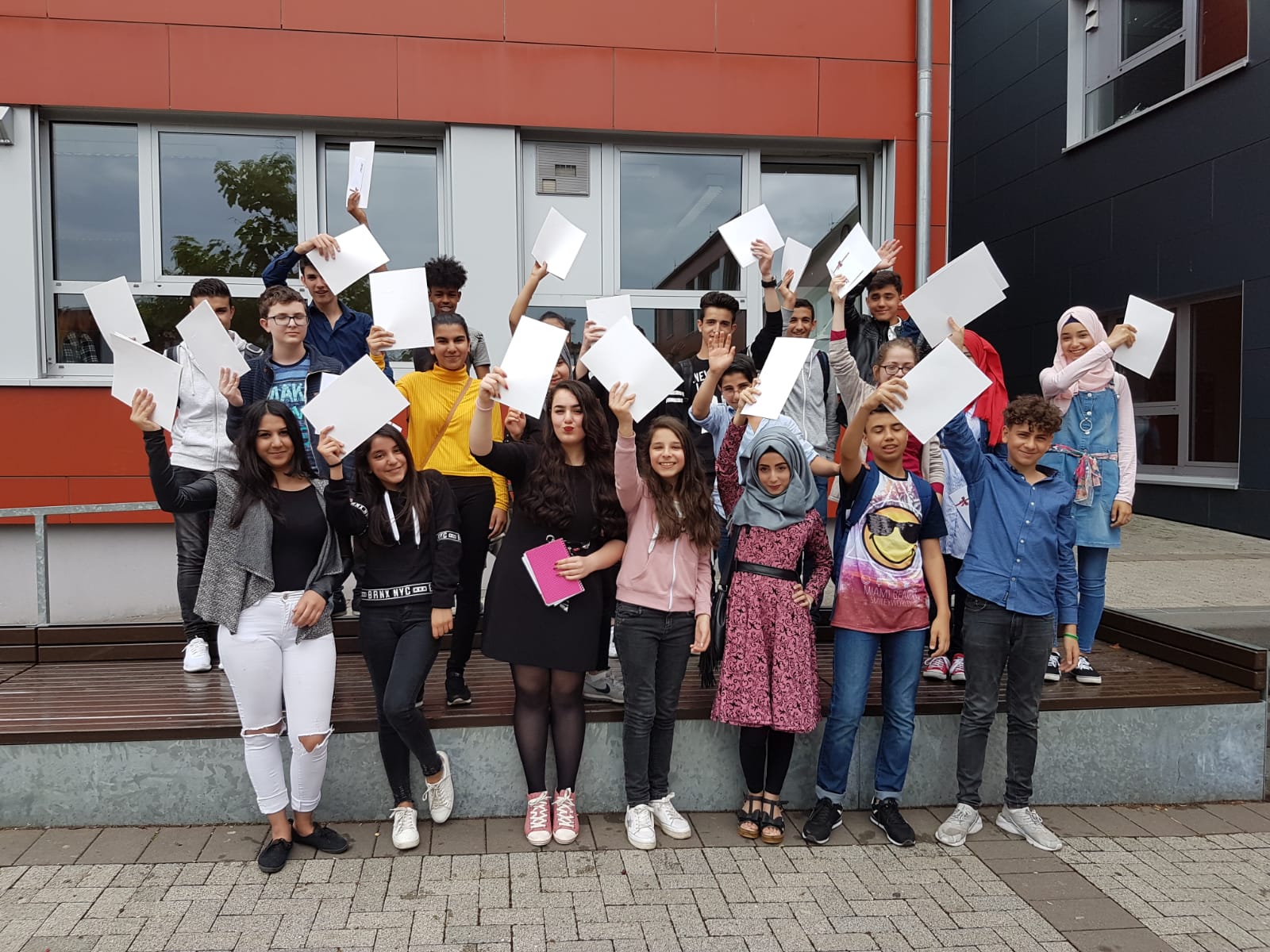 Nun folgte mit der Verleihung der Zertifikate der Höhepunkt des Tages. Zunächst erhielten elf Schülerinnen und Schüler Bescheinigungen für Teilleistungen. Sie hatten in mindestens einer der abgeprüften Teilfertigkeiten (Schreiben, Hören, Lesen, Sprechen) die Niveaustufe A2 oder sogar B1 erreicht. Zehn Schülerinnen und Schüler hatten in allen vier Kompetenzen mindestens die Niveaustufe A2 nachgewiesen und erhielten das „Deutsche Sprachdiplom A2“. Yara, Husam, Raha und Jamil hatten sogar in allen Prüfungsteilen die Niveaustufe B1 geschafft. Sie erhielten das „Deutsche Sprachdiplom B1“. Der Förderverein unserer Schule hatte es durch seine Unterstützung ermöglicht, dass alle Prüflinge zusätzlich zu den Bescheinigungen und Diplomen ein kleines Präsent erhielten.
