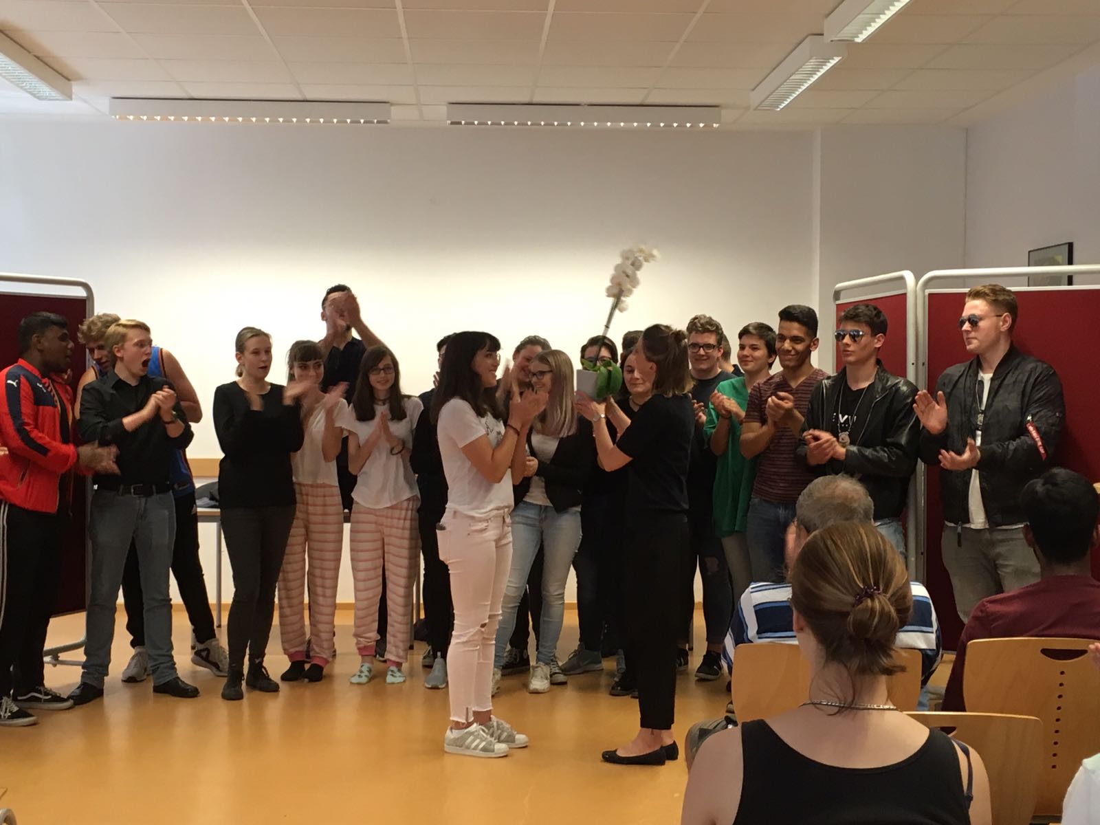 Trotz der nicht ganz unwichtigen Parallelveranstaltung – immerhin ein Spiel der deutschen Nationalmannschaft – war die Aufführung des diesjährigen Literaturkurses Q1 in der Cafeteria ein voller Erfolg.