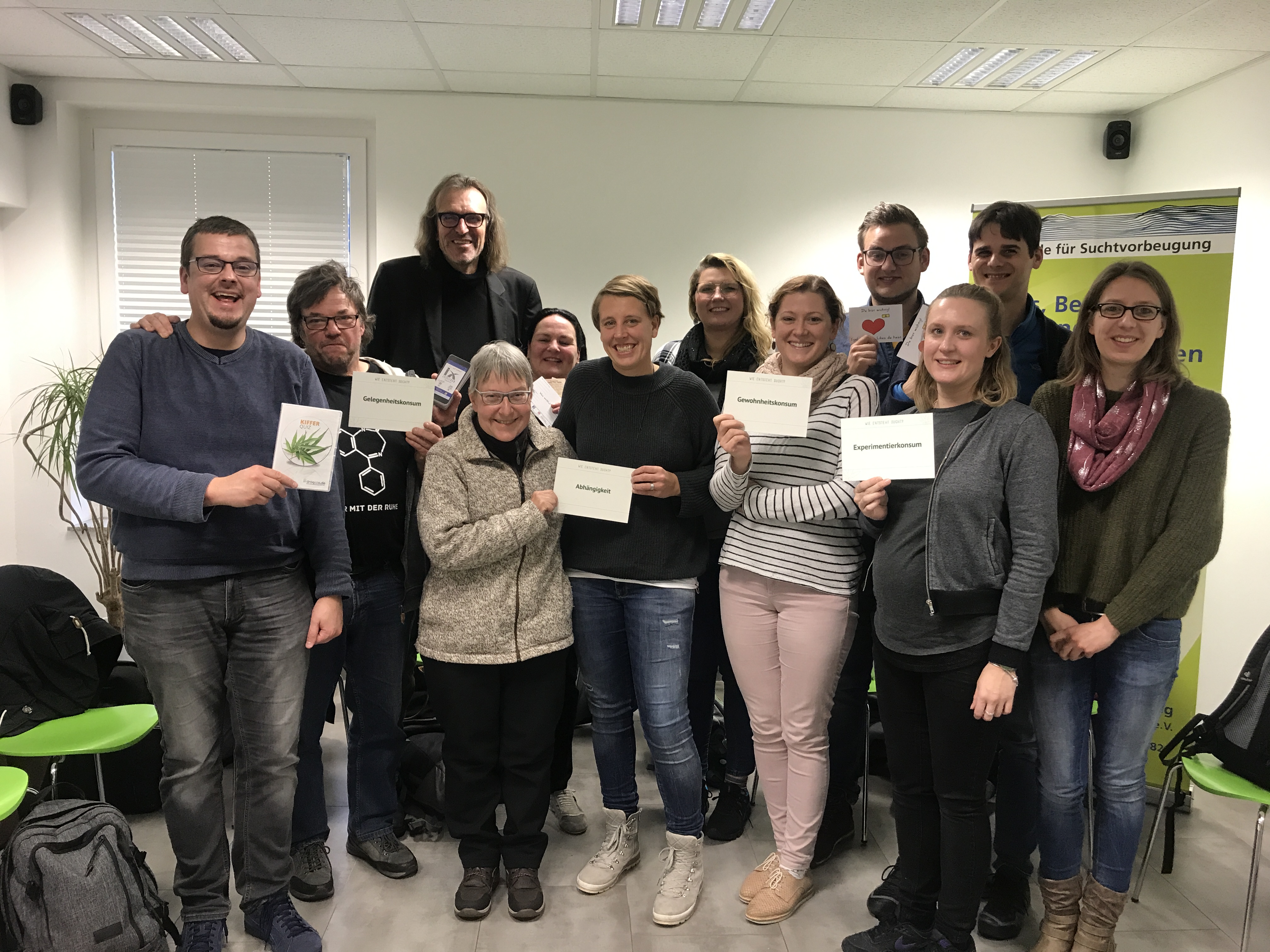 Als Fachkonferenz besuchten die Biologie unterrichtenden Kolleg*innen unserer Schule zu Beginn des Jahres 2020 die Beratungsstelle für Drogenprobleme e. V. in Wuppertal-Elberfeld. Thomas Rehbein stellte Angebote und ausleihbare Materialien für die Schule vor, machte während des kurzweiligen Austauschs darauf aufmerksam, dass sich aus seiner Sicht, auch begründet durch seine Tätigkeit in der Fachstelle für Suchtvorbeugung, Probleme im Bereich des Konsums und der Süchte verschoben hätten: Das Thema Mediensucht rücke stark in den Vordergrund, während im Bereich der substanzbezogenen Süchte sogenannte „Teile“ (Ecstasy-Tabletten), zumindest in Wuppertal, „in“ seien und große Gefahren in sich bergen.