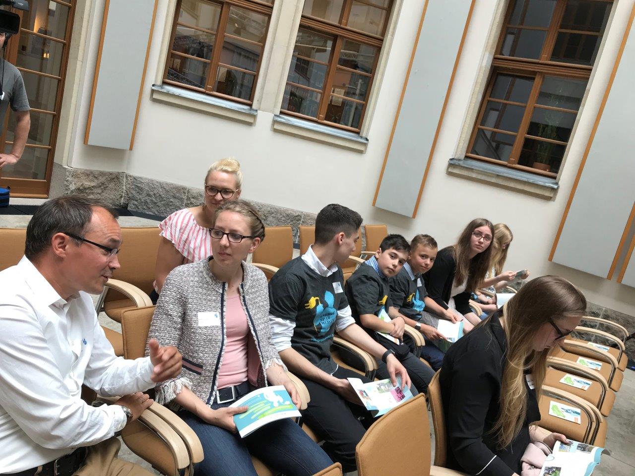 Voller Vorfreude begaben sich sechs Auserwählte zusammen mit ihren Lehrer*innen Frau Roden, Frau Fohlmeister und Herrn Fischer auf den Weg in die Bundeshauptstadt. Bereits auf der Fahrt fieberten sie der anstehenden Preisverleihung im Umweltministerium zur Ehrung der Energiesparmeister aller Bundesländer entgegen. Nach ihrem Einzug ins Hostel erkundete die Gruppe die Umgebung, traf auf Berlins „Goldelse“ (Siegessäule) und bewunderte den Sitz des Bundespräsidenten (Schloss Bellevue).