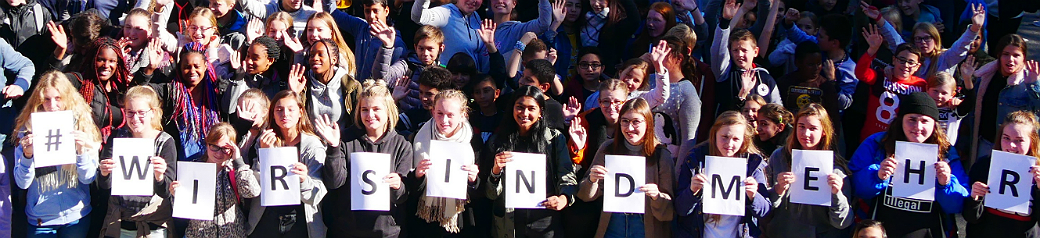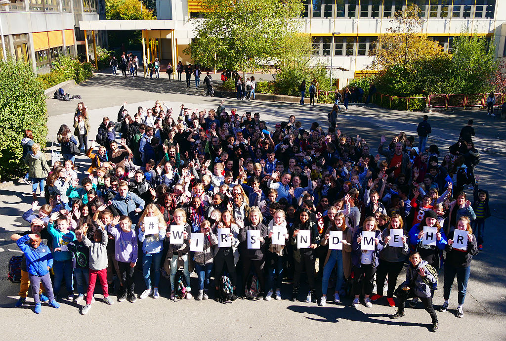 Am Donnerstag, den 27.09.2018 versammelten sich viele Schülerinnen und Schüler unserer Schule auf Hof 3, um gemeinsam ein Zeichen zu setzen. Mit dem Foto zu dem Hashtag #wirsindmehr stehen sie gemeinsam für eine offene, bunte Gesellschaft ein, die sich gegen Rechtsextremismus und Rassismus ausspricht.