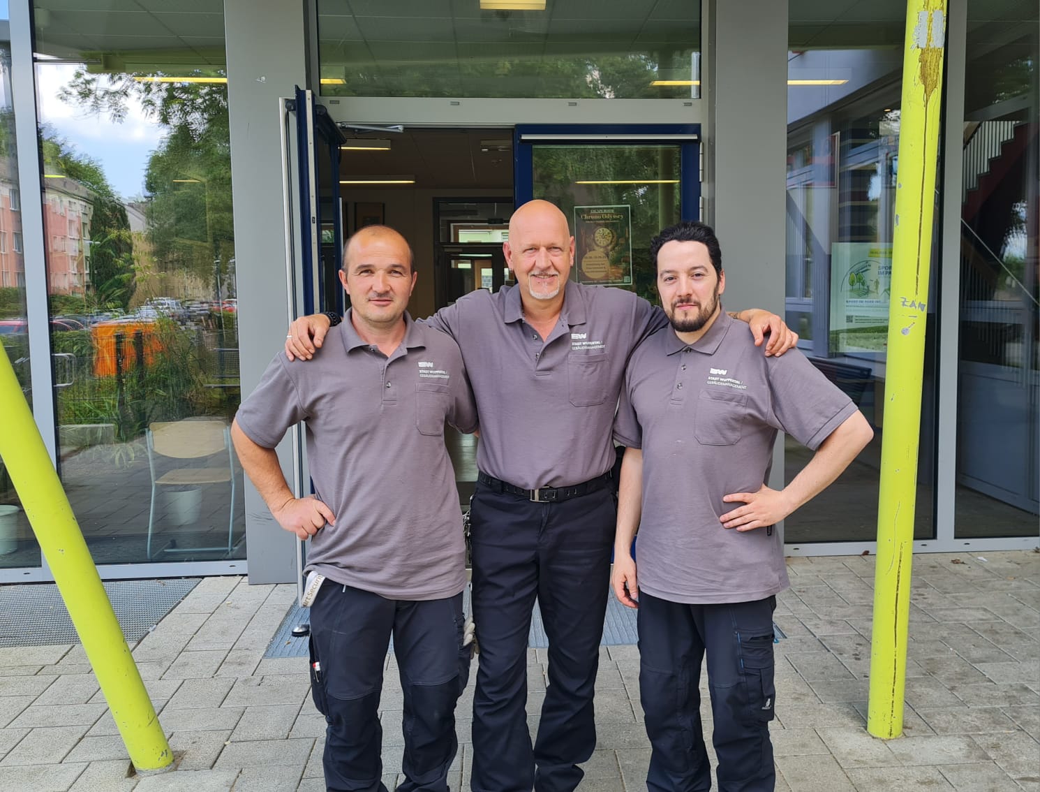Die Handynummer des diensthabenden Hausmeisters befindet sich an der Tür der Hausmeister-Loge.